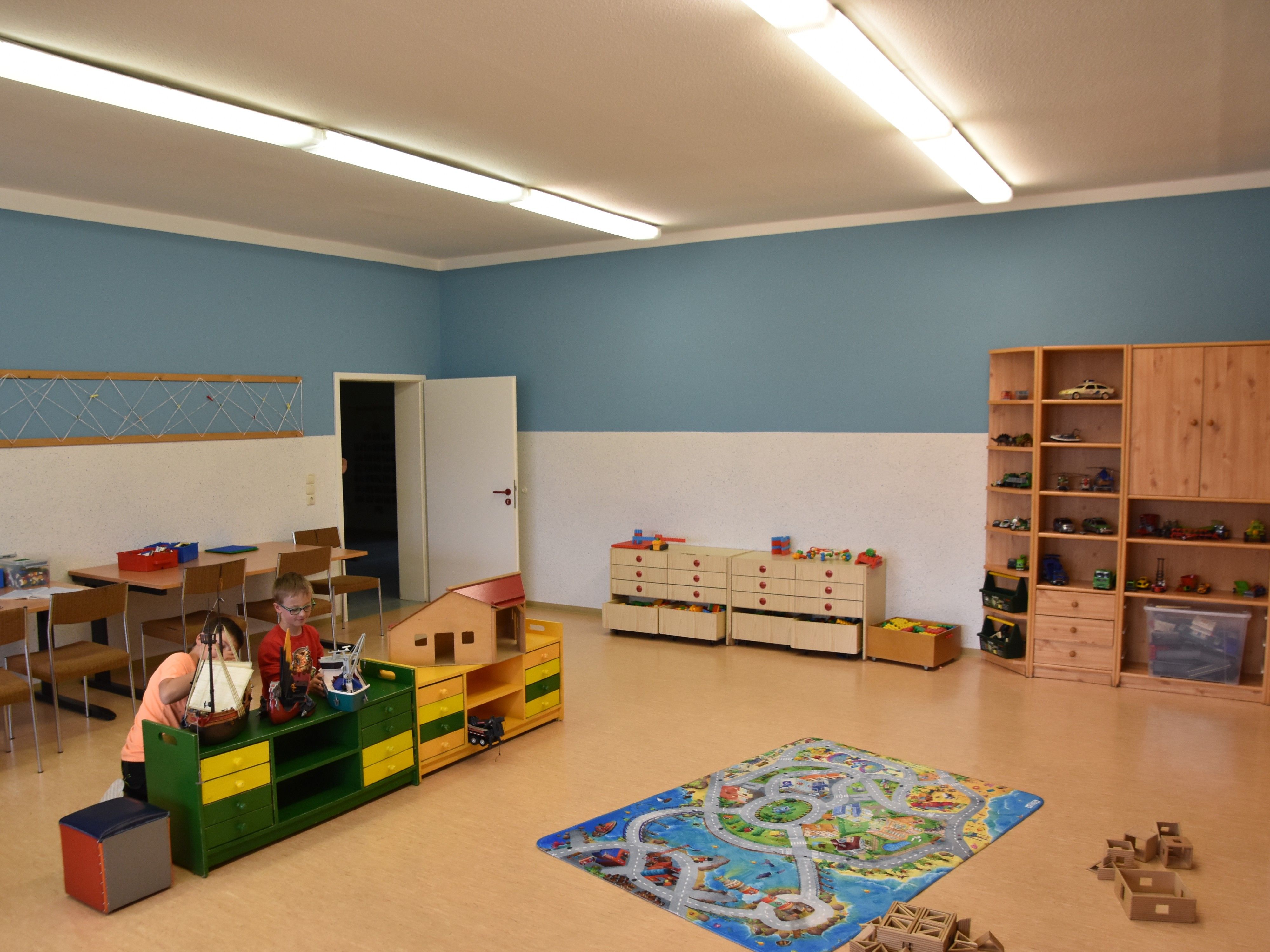 aus benachbarten Orten, unsere Einrichtung zu besuchen. Uns stehen insgesamt 490 qm zur Verfügung, dazu zählen drei Spielräume, ein Ruheraum,